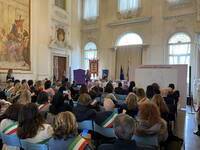La cerimonia si è aperta con la consegna della fascia viola da parte di Luca Nardi, presidente nazionale di Costruiamo Gentilezza, alla consigliera provinciale delegata alla Gentilezza Maria Cristina Franco, vera anima del progetto.