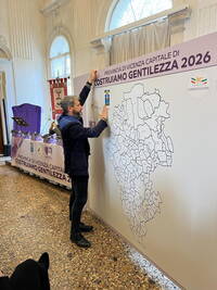Un impegno corale che la Provincia ha voluto rendere visivamente concreto attraverso la creazione di una mappa della Gentilezza, sulla quale ogni rappresentante ha potuto posizionare il proprio logo e la sagoma viola del Comune di appartenenza. Un vero e proprio puzzle collettivo, pensato per continuare a comporsi nel corso dell’anno e che si auspica possa tingersi sempre più di viola, simbolo di una gentilezza diffusa e condivisa sul territorio.