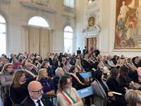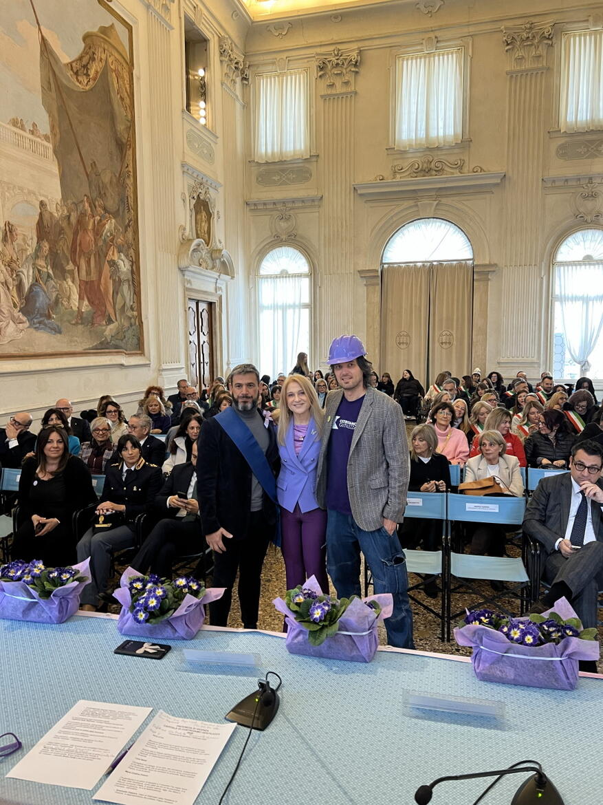 La cerimonia si è aperta con la consegna della fascia viola da parte di Luca Nardi, presidente nazionale di Costruiamo Gentilezza, alla consigliera provinciale delegata alla Gentilezza Maria Cristina Franco, vera anima del progetto.
