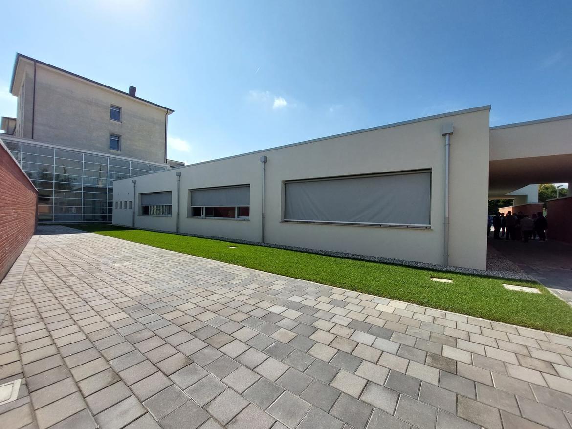 A Bassano del Grappa è stata ripensata a verde l’area esterna del centro studi, uno spazio da vivere con aula esterna e pensilina per le bici (210.000 euro).